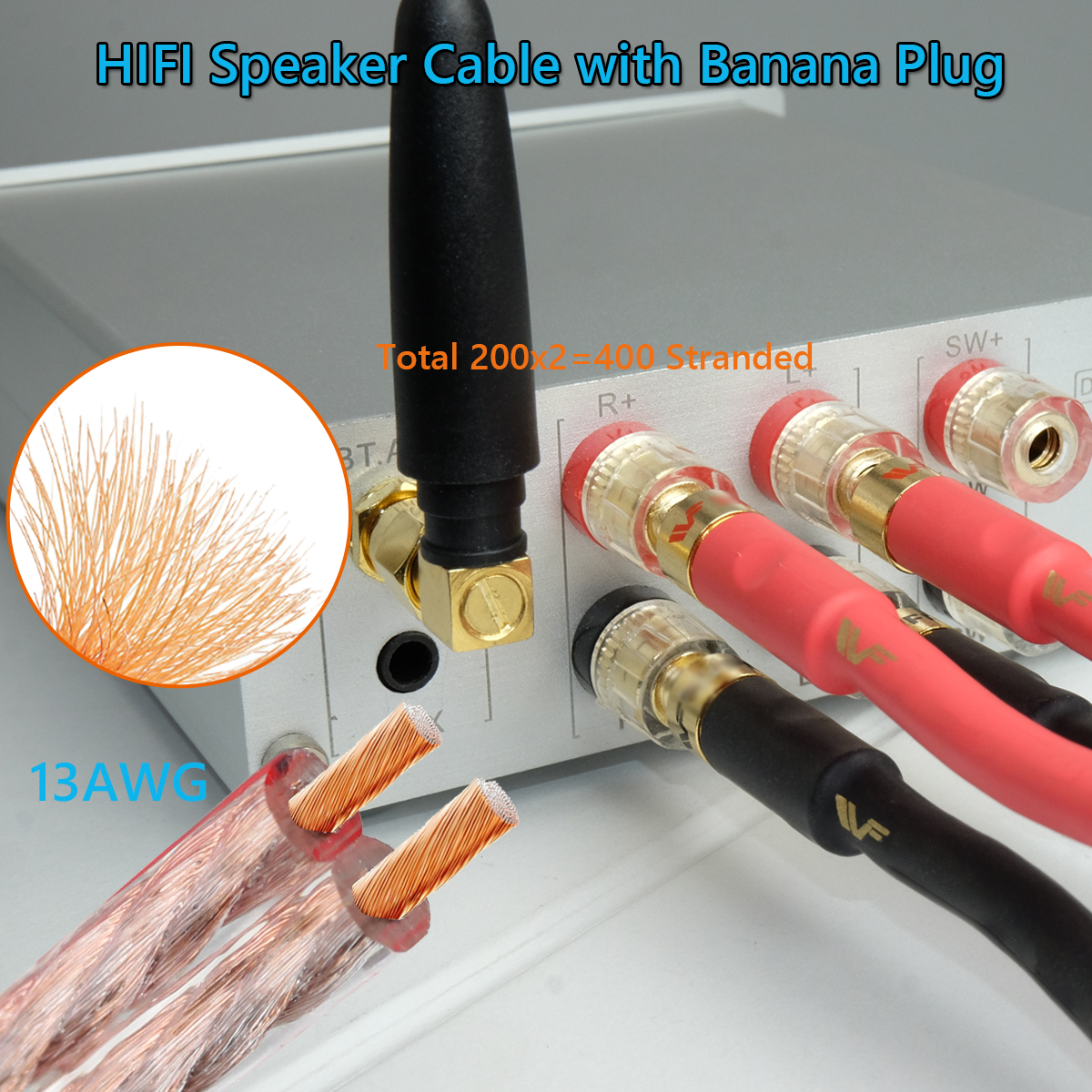 [Pre-assembled 3m Audio Wire Cable]This banana speaker cable kit Pre assembled the Gold-Plated Right Angle banana plugs with 13 AWG Speaker wire cable, more convenient for use without extra assemble. The plugs have already been secured to the wire cable, wire connection secure very well. Plug and Play design, easy for use. PVC outer Jackets isolate wires which keep them from shorting out & provide ample protection against abrasion.